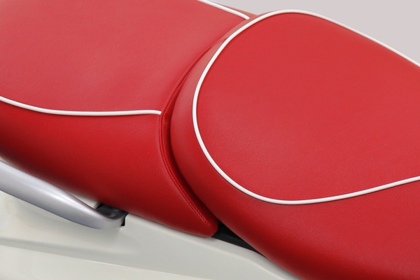 鮮やかな赤の表皮に爽やかな白いパイピングを施した、専用カラーのシートです。従来モデルと比べライダーの着座位置を約2cm低くし、良好な足つき性を実現。ビギナーライダーの方にも安心してお乗りいただけます。