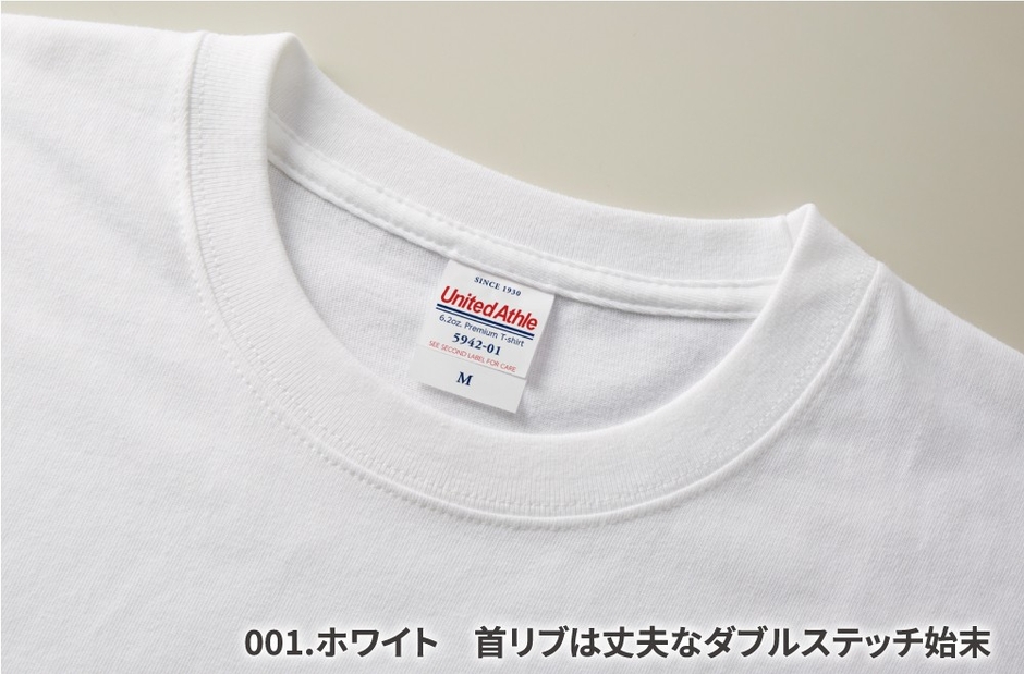 Tシャツは何度も首を通すものだからこそ、首リブの強度はマスト条件。製造工程で手間をかけ、頑固に縫い付けたダブルステッチを採用することで、伸びや型くずれを防ぎ、長く愛用できる仕上がりを実現しました。