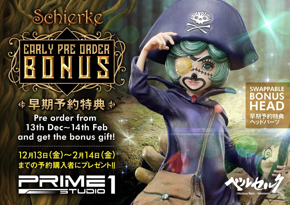 スタチューメーカー株式会社プライム1スタジオ(東京都中央区新川1丁目18-11/代表取締役:松本理恵)は「ベルセルク」より「アルティメットプレミアムマスターライン ベルセルク シールケ」の予約受付を開始しました。商品の発売は2021年1月~2021年4月を予定しています。