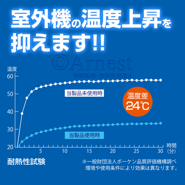 アーネスト株式会社(代表取締役:鈴木邦夫)は、エアコンの室外機に貼り付けることで直射日光を遮り、優れた冷房効果が期待できる【エアコンの室外機を守ります(4枚組)】を5月20日に発売いたしました。