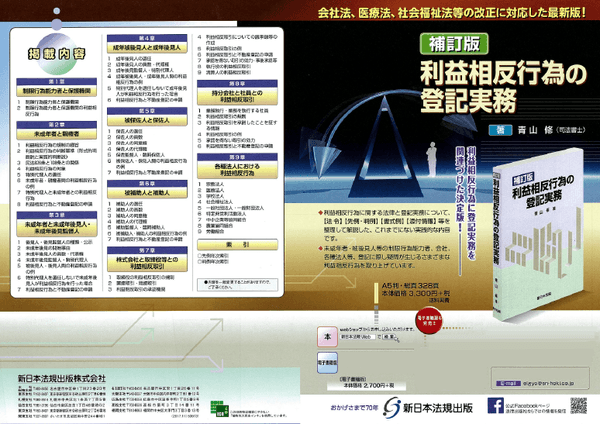 会社法、医療法、社会福祉法等の改正に対応した最新版!「〔補訂版〕利益相反行為の登記実務」好評につき少部数ながら再入荷いたしました!