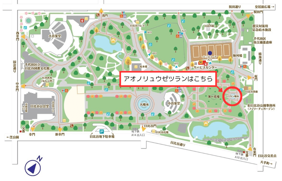 数十年に一度しか開花しないと言われ、「1世紀に一度開花する植物(センチュリープラント)」の別名を持つリュウゼツラン。そんな珍しい巨大植物を銀座や有楽町にほど近い、都心の日比谷公園でご覧いただけます。今回開花したアオノリュウゼツランは日比谷公園・第一花壇の「ペリカン噴水」の脇にあります。