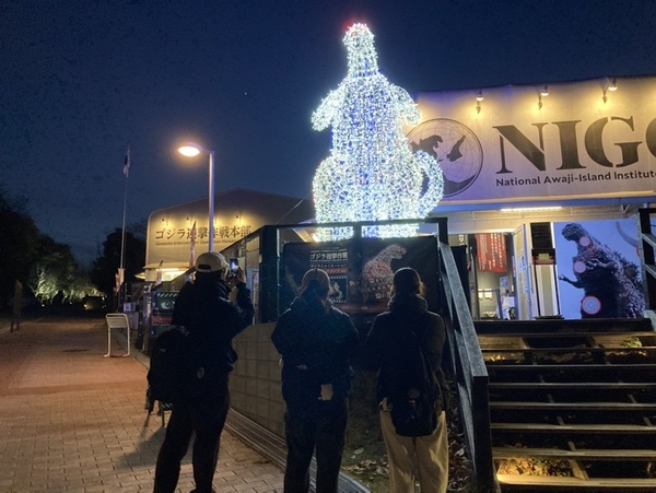 設置から早くも1カ月が経過し、アメリカ・香港・台湾・シンガポール・オーストラリアなど世界中のゴジラファンが兵庫県淡路島に大集合してくださいました!全身がライトアップされた高さ3mの「ゴジライルミネーション」は、バーニングゴジラ仕様で胸が赤く染まり、今にもエネルギーがあふれ出しそうで、「遠くから見てもハッキリとゴジラが輝いている」、「胴回りの赤い光がまさにバーニングゴジラ!」とファン大興奮のコメントも届きました。迫力満点のゴジライルミネーションで、一日中、夢中になれるニジゲンノモリを締めくくろう!