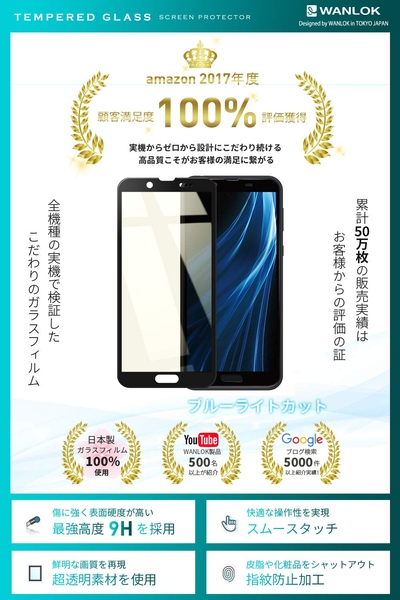モバイルアクセサリー関連の商品開発や製造・販売を手がけるWANLOK 合同会社(本社:東京都渋谷区、運営責任者:菅原克仁)は、この度、SHARP製「アクオス センス2 (SH-01L SH-M08 SHV43) 5.5 インチ」を大切に保護する液晶保護ガラスフィルムを、アマゾンサイバーマンデーに合わせ、20%OFFで販売開始いたしました。
