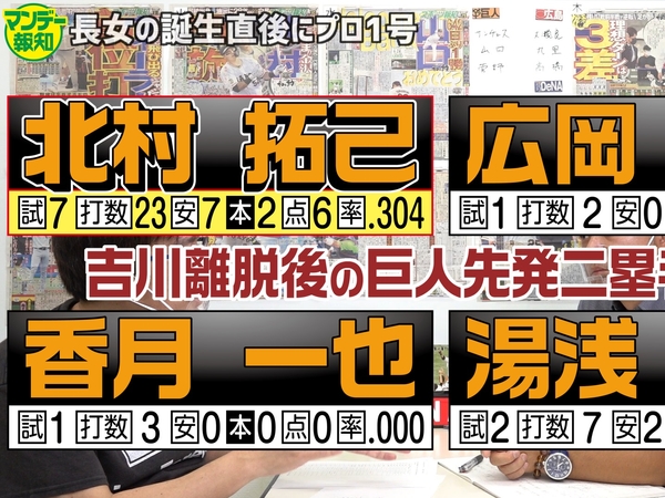 毎週月曜夜にホットな球界情報をお届けする「マンデー報知」。先週は5戦全勝で7連勝となった巨人の強さを大分析。山口俊の復活勝利に岡本和真の決勝弾など話題豊富な中、加藤&水井両デスクは先週2度も1面を飾った北村拓己に注目しました。