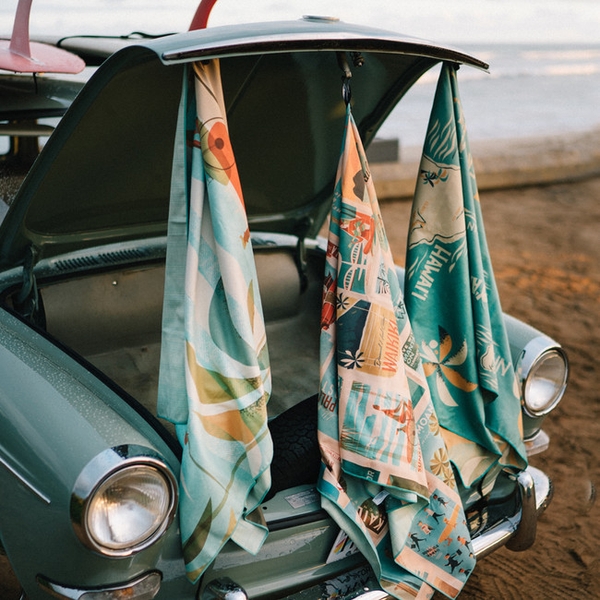 賞品:ニック・カッチャー サーフタオルを25名様(Twitter:10名、Instagram:5名、Facebook: 10名)にプレゼントします。ニック・カッチャー氏がデザインしたアートがプリントされたサーフタオル(76.2cm x 177.8cm)は大判なのに軽量で乾きやすく人気の商品です。カッチャー氏は古き良き時代のサーフィンやビーチカルチャー、ノスタルジアからインスピレーションを得て独特なアートスタイルを確立したオアフ島在住の人気アーティストです。