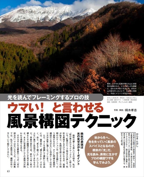 秋から冬へ、色を失っていく晩秋の風景。冬の訪れを感じさせるこの時期のロケーションは、何を主題にし、どう表現するのか、そこに明確な意図や構図の工夫がないと、作品としての伝わり方が弱くなってしまいます。そこで、スパイスとなるのが晩秋の「光」です。光を読み、表現に生かすプロの構図テクニックを紹介します。
