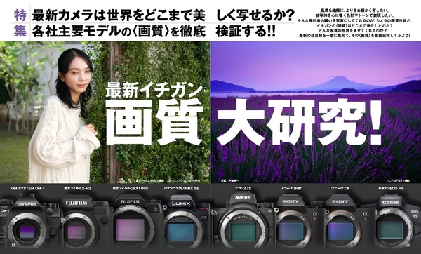 ここでは最新のミラーレス一眼を一堂に集めて、「画素数・解像性能」「色と階調再現」「高感度画質」を徹底検証します。さらに、画質を引き出す使いこなしポイントも解説。