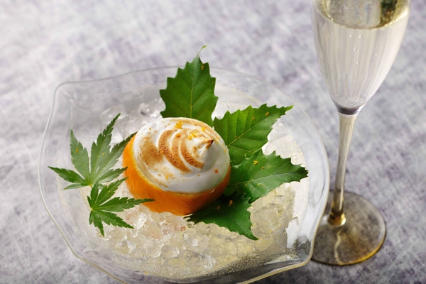 シードルは、秋から冬に収穫されたりんごを使って仕込み、翌年の4月~6月に出荷のピークを迎えるため、春が旬の時期であるといわれています。しかし、規模の小さい醸造所やりんご農家からの委託で生産を行っている場合は、出荷数が限られ、全国に流通しないものもあります。そこで、日本シードルマスター協会の協力により、長野県内で生産された希少なシードルや、試作段階のものをアペリティフで飲み比べられるようにしました。酵母やりんごの種類による味わいや風味の違いを楽しめます。場所は、メインダイニング「日本料理 嘉助」のテラス席。新緑が広がる棚田の景色を眺めながら、食事前のひとときを過ごせます。また、シードルアンバサダーが料理にも合うものをセレクトしているので、好みのシードルは、その後の食中のペアリングとして楽しむこともできます。
