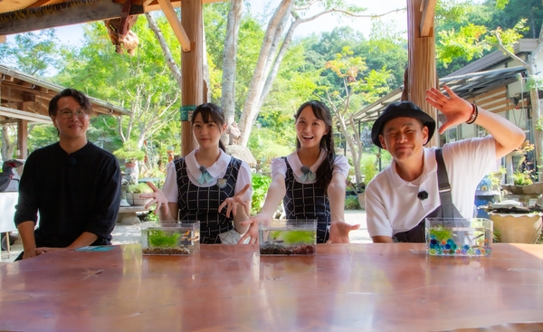 3人が思い思いの材料を使って個性あふれるオリジナル水槽を作成。中に入れるメダカは「お宝メダカすくい」でゲット!3人は高額メダカを選ぶことができるのか?