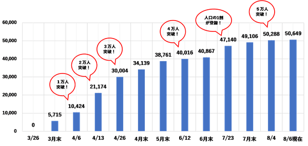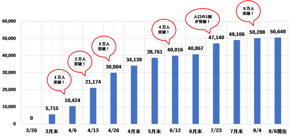 これまで,新型コロナウイルス感染症に関する情報などを発信してきましたが,開設から約4カ月で,登録者数が市民の1割を超える5万人に到達しました。