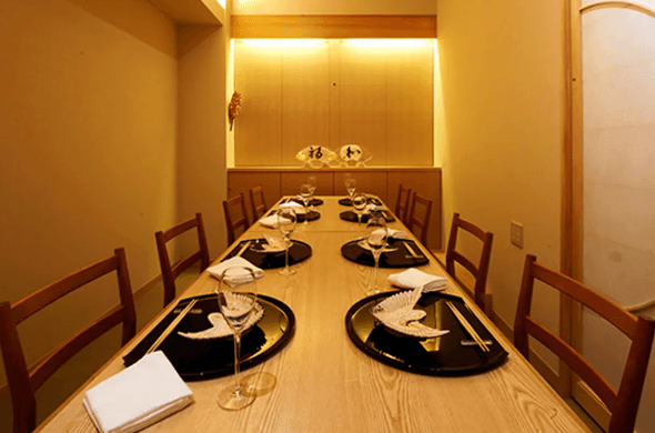 料理人との会話や匠の技を目の前で楽しみたい方はカウンター席、親しい方との食事ならテーブル席、接待やお祝い事などは個室と使い分けてみるのも良いですね。シチュエーションごとに違う使い方をすることで、きっと、それぞれに違った満足感が得られますよ。