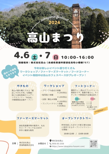 波佐見焼の窯元・高山で4月6日(土)-7日(日)に「高山まつり」が開催されます。
