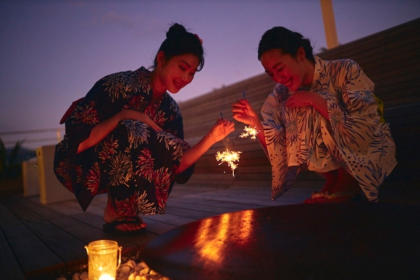 熱海の絶景と温泉に浸るリゾートホテル「星野リゾート リゾナーレ熱海」では、2020年6月14日~12月13日の熱海海上花火大会開催日の全13日限定で、花火鑑賞を楽しむ、贅沢な花火尽くしの宿泊プラン「花火女子旅」が登場します。熱海海上花火大会をイメージしたメインダイニング「和食ダイニング 花火」で、夕食と花火鑑賞を楽しむことができます。さらに花火柄の浴衣、客室でできる線香花火などを用意し花火尽くしの滞在を提案します。