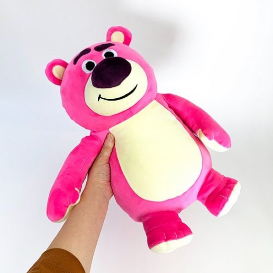 インパクトのあるショッキングピンクのボディが人気の、トイストーリーのロッツォ。ぬいぐるみにもクッションにもなるアイテムなのですが、一番の使い道は、ツボ押し!
