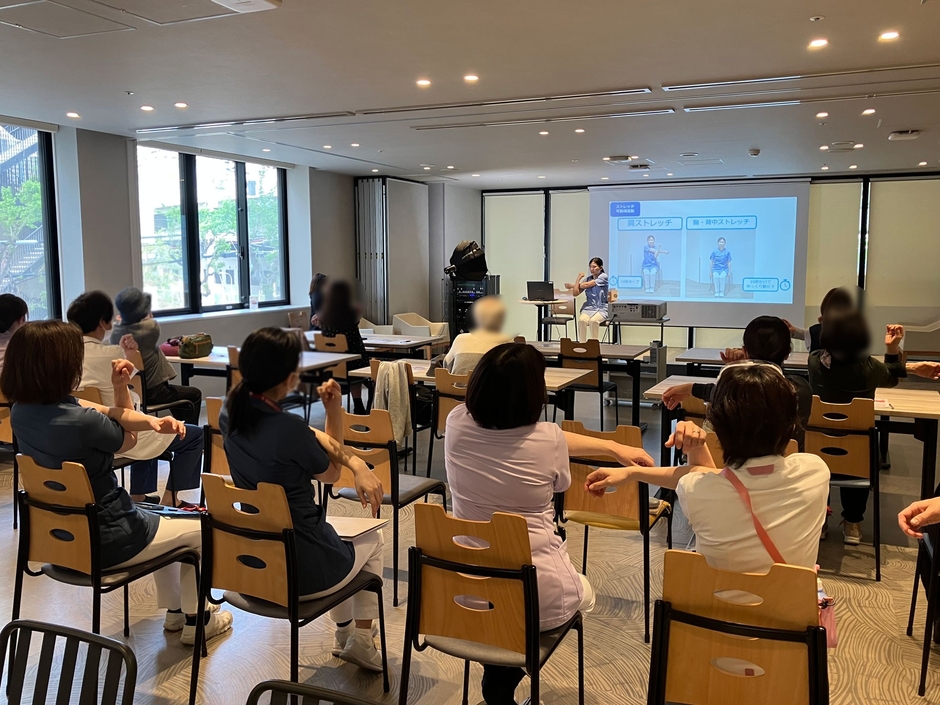 本講座は、がん患者さんやご家族、地域のみなさまへのサポートを目的に発足した、医誠会国際総合病院のがん患者会「さくらサロン」内で開催いたしました。医師、看護師、管理栄養士など様々な医療スタッフも参加いたしました。
