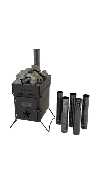 バイオエタノールを燃料とする特許出願済みのストーブで、無煙のサウナを実現しました。