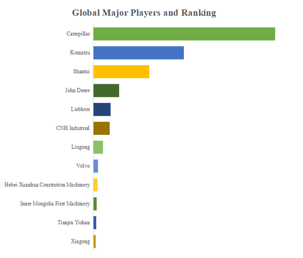 YHResearchのトップ企業研究センターによると、ブルドーザーの世界的な主要製造業者には、Caterpillar、Komatsu、Shantui、John Deere、Liebherr、CNH Industrial、Liugong、Volvo、Hebei Xuanhua Constrution Machinery、Inner Mongolia First Machineryなどが含まれている。2023年、世界のトップ5企業は売上の観点から約82.0%の市場シェアを持っていた。