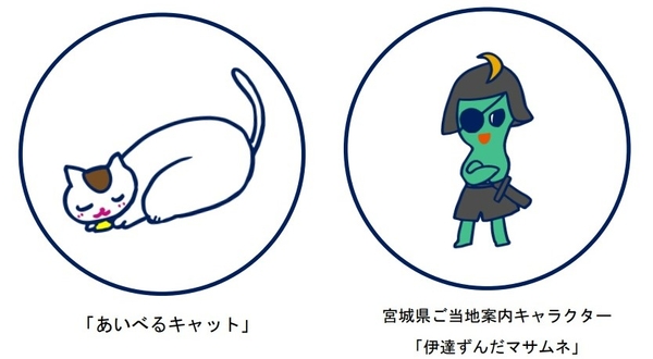 自由気ままな性格の猫(名称:あいべるキャット)が気まぐれに各就航先をフラッと訪れ、各就航先のオリジナルご当地案内キャラクターが皆さまをご案内します。