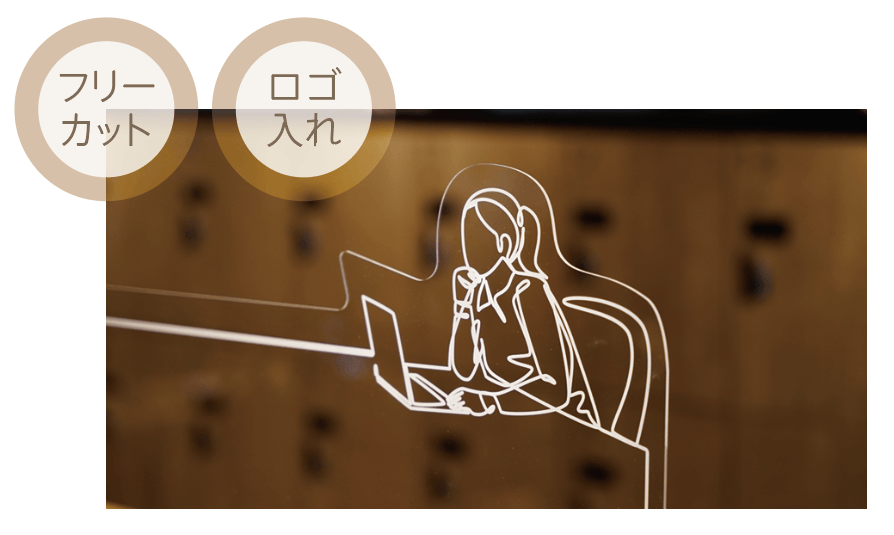 パーテーション部分はオリジナルの形状、プリントを加えてオーダーメイドで一点から制作します。