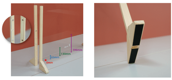 ヒノキの無垢材を土台に使用しています。高さ調整も強力マグネットでとめるだけのワンタッチ方式を採用いたしました。足裏の滑り止めゴムにより、設置時の安定感を保ちます。
