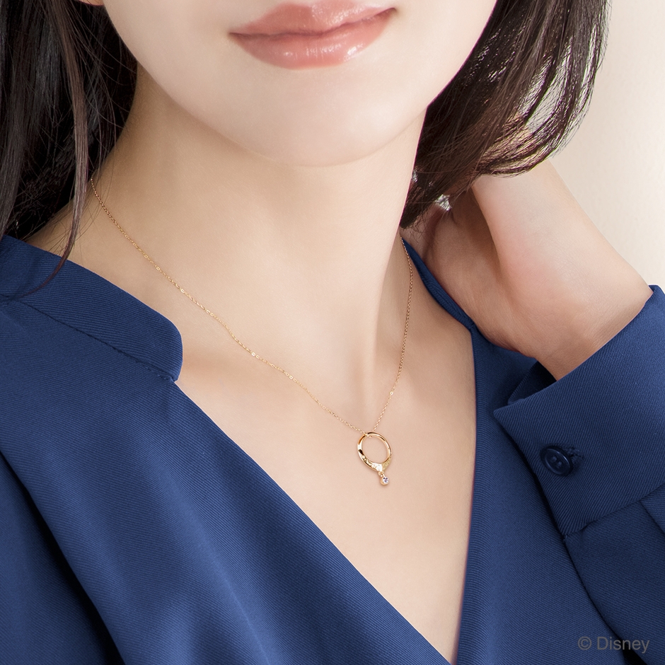 ディズニープリンセスの世界観をさりげなく表現した上品なデザイン。シンプルなデザインで、ペンダントとして身に着けた時、あわせる服を選ばないのも嬉しいポイント。
