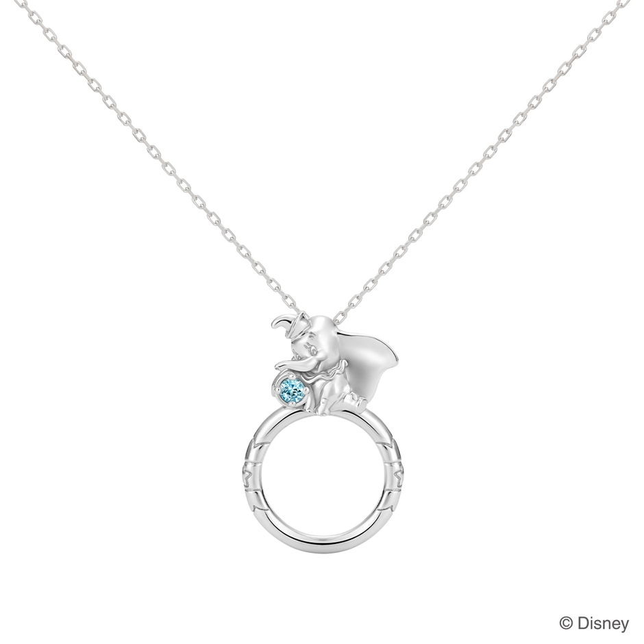 楽しげなダンボの表情を繊細に表現。側面に施された、サーカスを連想させる星柄のデザインもポイント。裏側にネックレスチェーンを通して、ペンダントとして身に着けることもできます。