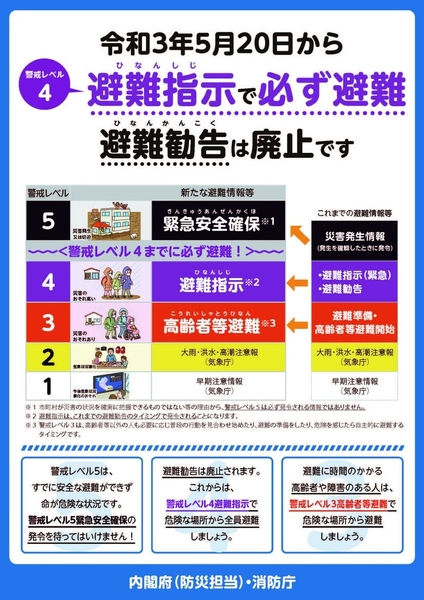 5月20日から避難勧告は廃止に。避難指示で避難に変わった(出典:内閣府防災)