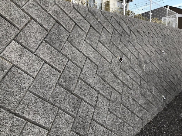 街中でよく見られる擁壁。穴は排水を行うためのもの(PhotoAC)