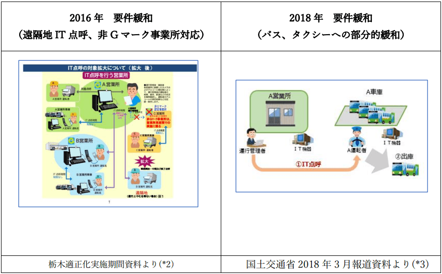 2008年から貨物事業者向けに定められた制度ですが、2011年、2016年、段階的に要件が緩和され、ついには2018年、ようやくトラック業界から、バスやタクシー業界でも使えるよう緩和が行われました。いまや自動車運送事業における点呼の「ニューノーマル」とも言えます。