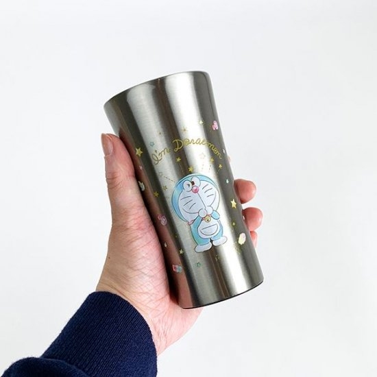 ステンレスの本体に、パステルタッチのドラえもんのデザインがキュート♡周りにはお星さまなどのモチーフが散りばめられていて、キラキラ感がキレイなんです。