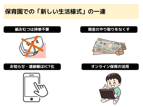 園児ごとの紙おむつの管理や、煩雑な現金のやり取り、また新型コロナウイルス感染拡大を防ぐための検温の連絡をはじめとする保護者とのコミュニケーションなど、保育士および保護者の負担をさらに減らす取組みの一環として、紙おむつの定額制サービス「手ぶら登園サービス」とのシステム連携が2020年7月1日にスタートします。