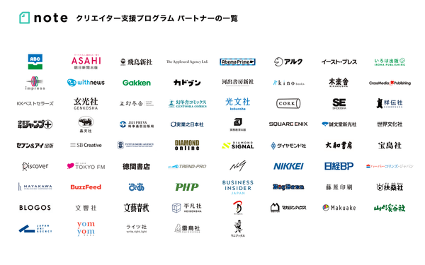 noteクリエイター支援プログラムにwithnews、河出書房新社、ダイヤモンド・オンライン、宝島社はじめ9パートナーが参画。 合計69パートナーになりました。