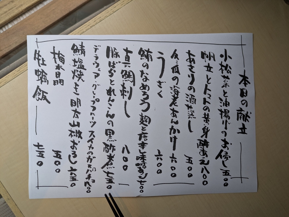 料理は、店主の経験を活かした和洋折衷の創作メニュー。定番のおつまみにもひと工夫を加え、日本酒と合わせたときに一層旨みが引き立つよう仕上げています。イタリアンの技法を取り入れた小皿料理や、居酒屋ならではの気取らない一品など、ここでしか味わえない組み合わせが楽しめます。