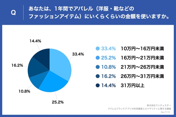 有効回答:アパレルブランドのアプリをダウンロードしたことがあり、かつ1年間でアパレル(洋服・靴などのファッションアイテム)に総額10万円以上使う人111名
