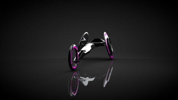 機体は、FRP製のオリジナルボディ。空力等を考慮し、実際の未来の姿としての車椅子をデザインしました。