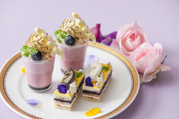 (上段)プリンセス“ラプンツェル”パフェ / ブルーベリーヨーグルトオペラ ~ラベンダーの香り~