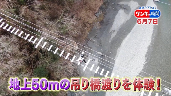 地上50mの吊り橋渡りを体験!スリルと健康の意外な関係を解明!