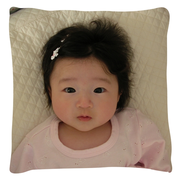 娘が生まれた記念に、赤ちゃんの写真をいつもそばに残しておきたいので、クッションカバーに