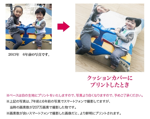 ➀スマホ・ガラケー・デジカメで撮った写真をクッションカバーに