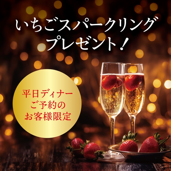 平日のディナータイムご予約のお客様限定で、「いちごスパークリングワイン」をご予約人数分プレゼントいたします。