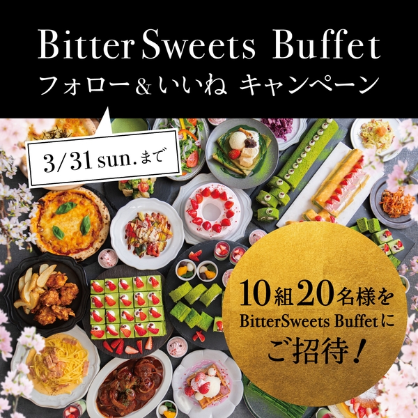『抹茶と桜と苺のフェア』開催を記念して、10組20名にビタースイーツ・ビュッフェにご招待!「フォロー&いいねキャンペーン」を開催いたします。