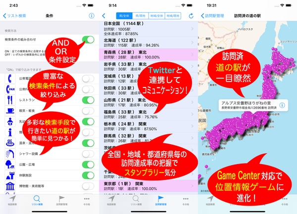 iOSアプリ「道の駅ナビ」の特徴