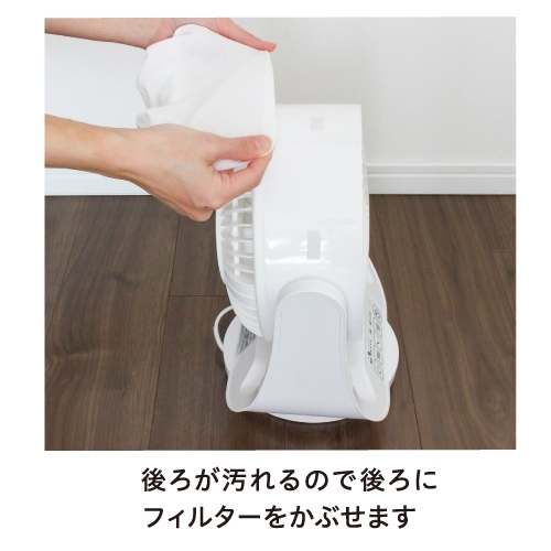 サーキュレーターの後ろ部分にかぶることで汚れをキャッチしてくれます。