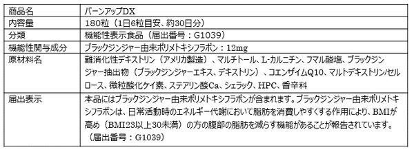 体脂肪対策に人気のプライベートブランドサプリメント「バーンアップDX」、機能性表示食品の届出が受理