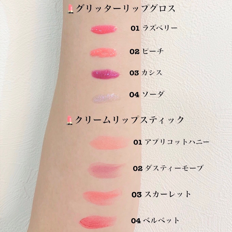 今回の新作は「グリッターリップグロス」と「リップスティック」で各4色のラインナップ。