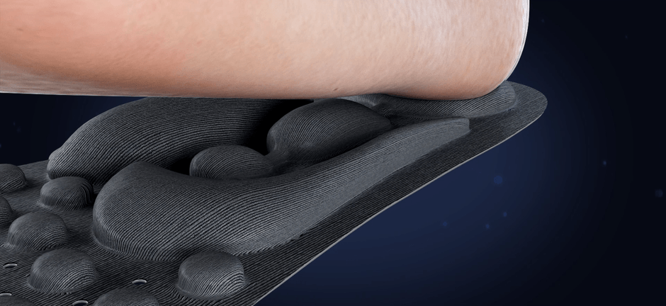 製品のを形づくり土台となっている部分はゴムのように柔らかく形状安定力に優れたTPUを使用しています。