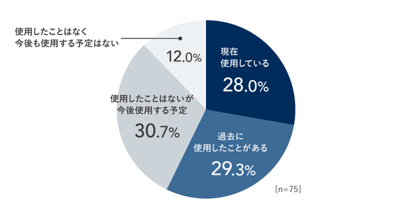 「デジタルマーケティング施策への動画クリエイティブの使用経験」について調査したところ、「現在動画を使用している」と回答した28.0%に加え、「過去使用したことはないが、今後使用する予定」と回答した人が30.7%となり、6割弱のマーケターがこれまでに動画クリエイティブの使用経験があることがわかります。