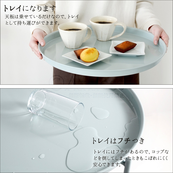 天板はトレイとして使えるので、キッチンで用意したコーヒーやお茶、お菓子などを乗せてそのままサイドテーブルまで持って行くことができます。