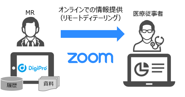 インフォコム株式会社(東京都渋谷区、代表取締役社長:竹原 教博)は、製薬企業のMR(医薬情報担当者)が活用する営業支援クラウドサービス「DigiPro(デジプロ)」と米ズームビデオコミュニケーションズが提供するオンライン会議システム「Zoom」を連携させた新機能を6月より開始します。これにより、対面だけでなくオンラインでもDigiProの特長であるコンプライアンスを遵守した医療従事者への情報提供が可能となります。